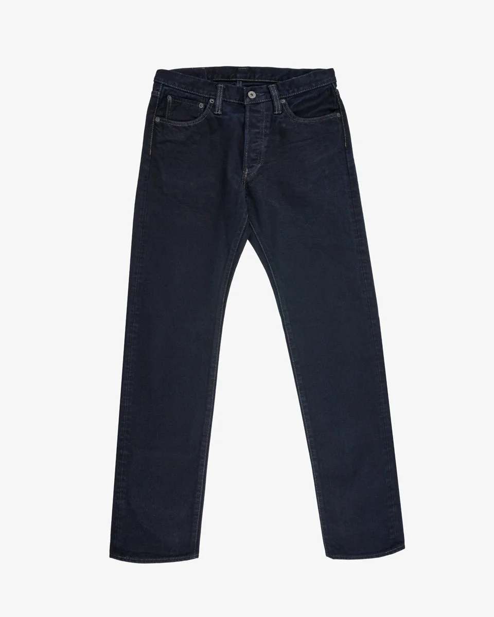 Our classic straight cut jean made from 14oz indigo selvedge denim which is made with a double twisted weft yarn (the same construction technique as our 21oz selvedge denim). This is our "least heavy" Japanese jean denim. Made In Japan - Designed by Shinichi Haraki, handmade by WORKS INC. in Japan 634 Straight Cut - Traditional straight cut, inspired by the 1966 Levi’s 501 - Medium Rise - Straight leg profile with a slight taper from knee to hem - Wider leg opening to accommodate most types of boots and footwear - Classic 5-pocket design 14oz Japanese Selvedge Denim - Overdyed Black - 100% cotton - Woven with a double twisted weft yarn - Indigo rope-dyed warp / white weft - Right-hand twill weave - Post-construction, this garment is overdyed using black sulphur dye - The sulphur overdyeing process oxidises any metal hardware for an aged appearance - This denim will fade with indigo-tinged hues through wear and washing Hardware & Construction - Traditional 3-button fly - Iron Heart branded tack button at waistband - Works Inc branded pocket rivets - Hidden rivets on rear pockets - Poly/cotton stitching for increased strength - Single and double needle chain stitch construction - Belt loops anchored at three points and sewn into the waistband - Heavy cotton pocket bags and lined rear pockets Selvedge ID - Sideseam, fly, and coin pocket selvedge ID Leather Patch - Lightweight vegetable-tanned steerhide - Stitched on all sides - Dyed Iron Heart graphic - Please note: Continued washing (especially at higher temperatures) may cause shrinkage and deformities Sanforized, One-Washed & Overdyed - Sanforization is a post-weave mechanical process which removes most potential shrinkage from a fabric before garment construction - To further reduce the risk of shrinkage, we wash the completed garment in an aggressive industrial washing machine. - Following this, a high-temperature overdyeing process removes any remaining potential shrinkage - This garment may fit slightly smaller than its non-overdyed counterpart. Please refer to our measurement charts carefully - No further shrinkage is expected if washed in accordance with our guidelines Stretch Details - The waist will stretch out approximately 1" with wear. All other dimensions that are put under pressure will stretch proportionally to the waist Care Guidelines - We recommend washing this garment at 30°C with a low (or no) spin cycle. Hang dry, do not tumble dry