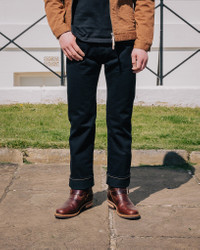 Our classic straight cut jeans made from our brand new 14oz broken twill selvedge denim. Broken twill denim was first used in 1964 by Wrangler as a solution for combatting leg twist. The process of weaving fabric in this method sees the combination of both right hand twill (RHT) and left hand twill (LHT) reversed every two warp ends, forming a zigzag-like pattern in the denim and leaving no bias in either direction of the weave, therefore eliminating leg twist. Made In Japan - Designed by Shinichi Haraki, handmade by WORKS INC. in Japan 634 Straight Cut - Traditional straight cut, inspired by the 1966 Levi’s 501 - Medium Rise - Straight leg profile with a slight taper from knee to hem - Wider leg opening to accommodate most types of boots and footwear - Classic 5-pocket design 14oz Japanese Broken Twill Selvedge Denim - 100% cotton - Broken twill weave - Indigo rope-dyed warp / white weft - This denim will fade naturally through wear and washing - Post-construction, this garment is overdyed using black sulphur dye - This denim will fade with indigo-tinged hues through wear and washing Hardware & Construction - Traditional 3-button fly - Iron Heart branded tack button at waistband - Works Inc branded pocket rivets - Hidden rivets on rear pockets - Poly/cotton stitching for increased strength - Single and double needle chain stitch construction - Belt loops anchored at three points and sewn into the waistband - Heavy cotton pocket bags and lined rear pockets Selvedge ID - Sideseam, fly, and coin pocket selvedge ID Leather Patch - Lightweight vegetable-tanned steerhide - Stitched on all sides - Dyed Iron Heart graphic - Please note: Continued washing (especially at higher temperatures) may cause shrinkage and deformities Sanforized, One-Washed & Overdyed - Sanforization is a post-weave mechanical process which removes most potential shrinkage from a fabric before garment construction - To further reduce the risk of shrinkage, we wash the completed garment in an aggressive industrial washing machine. - Following this, a high-temperature overdyeing process removes any remaining potential shrinkage - This garment may fit slightly smaller than its non-overdyed counterpart. Please refer to our measurement charts carefully - No further shrinkage is expected if washed in accordance with our guidelines Stretch Details - The waist will stretch out approximately 1" with wear. All other dimensions that are put under pressure will stretch proportionally to the waist Care Guidelines - We recommend washing this garment at 30°C with a low (or no) spin cycle. Hang dry, do not tumble dry