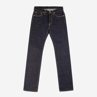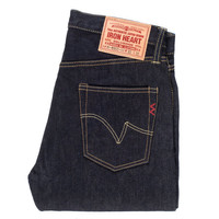 Slim straight jean with a low/medium rise in Iron Heart's 14oz denim (second version) which is made with a double twisted weft yarn (the same construction technique as their 21oz selvedge denim). - Made in Japan - Slim straight cut, "The Devil's Fit" - V2 of IH's 14oz denim which is made with a double twisted weft yarn, like their 21oz denim - This is the "least heavy" Japanese denim Iron Heart uses for jeans - Lined rear pockets - Button fly and hidden rivets - Belt loops sewn into waist band - Poly/cotton constructional stitching - Selvedge side seams and fly construction - Sanforized and one-washed - no shrinkage to be expected (with reasonably careful washing and drying). - The waist will stretch out approximately one inch with wear. - Dimensions that are put under pressure may stretch proportionately to the waist.