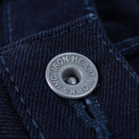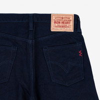 Iron Heart's slim straight cut jeans, made from 14oz selvedge denim where both the warp and the weft (which is usually undyed) have been rope dyed indigo. Constructed with navy tonal stitching. - Made in Japan - Slim straight cut - Low/medium rise - 14oz rope dyed indigo warp/rope dyed indigo weft Japanese selvedge denim - Woven with a double twisted weft yarn (the same as our 21oz selvedge denim) - Lined rear pockets - Button fly and hidden rivets - Belt loops sewn into waistband - Tonal Poly/cotton constructional stitching - Tonal arcuates - Selvedge side seams and fly construction - Sanforized and one-washed - little to no shrinkage to be expected