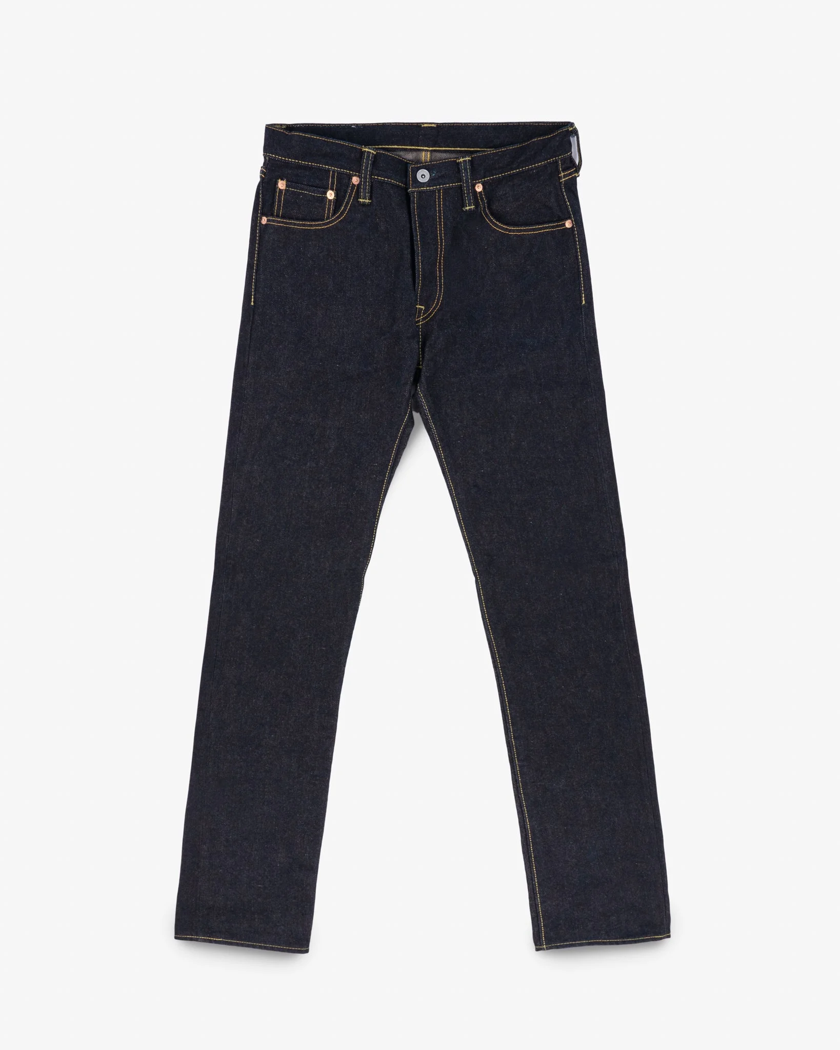 Our slim straight cut jeans, built using 19oz indigo-dyed left-hand twill Japanese selvedge denim. In a left hand twill, the warp gets tightened during the weaving process resulting in a harder, smoother face to the fabric. Often the denim will appear lighter due to more of the weft being visible on the face of the fabric. This 19oz denim has been dipped in indigo many times to achieve a very dark LHT. Made In Japan - Designed by Shinichi Haraki, handmade by WORKS INC. in Japan 666 Slim Straight Cut - Traditional straight cut styling with an all-around slimmer profile - Medium/low rise - Straight leg profile with a slight taper from knee to hem - Classic 5-pocket design 19oz Left-Hand Twill Japanese Selvedge Denim - 100% cotton - Woven under high tension to create a stiff fabric with an intense indigo appearance - Indigo rope-dyed warp / white weft - Left-hand twill weave - This denim will fade naturally through wear and washing Hardware & Construction - Traditional 3-button fly - Iron Heart branded tack button at waistband - Works Inc branded pocket rivets - Hidden rivets on rear pockets - Poly/cotton stitching for increased strength - Single and double needle chain stitch construction - Belt loops anchored at three points and sewn into the waistband - Heavy cotton pocket bags and lined rear pockets Selvedge ID - Sideseam, fly, and coin pocket selvedge ID Leather Patch - Heavyweight vegetable-tanned steerhide - Natural finish - Belt-through design - Debossed Iron Heart graphic - Please note: Continued washing (especially at higher temperatures) may cause shrinkage and deformities Unsanforized but One-Washed - This denim has not been sanforized. Sanforization is a post-weave mechanical process that removes most potential shrinkage from a fabric before garment construction - However, unlike our raw, loomstate denim, to reduce the risk of shrinkage, we wash the completed garment in an aggressive industrial washing machine. This process removes virtually all potential shrinkage. - Due to the tight left-hand twill (LHT) weave, little to no furthur shrinkage is expected when washed in accordance to our guidelines - This denim has not undergone a post-weave skewing process, so you will notice leg or arm twist with wear. If you prefer to avoid this characteristic, we recommend exploring our other denim options Stretch Details - The waist will stretch out approximately 1" with wear. All other dimensions that are put under pressure will stretch proportionally to the waist Care Guidelines - We recommend washing this garment at 30°C with a low (or no) spin cycle. Hang dry, do not tumble dry