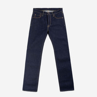 Our slim straight jeans with a low/medium rise constructed from our 21/23oz UHR denim. UHR is an acronym for “Ultra Heavy Raw”, an unsanforised and loomstate fabric, UHR denim fabric starts at 21oz, and becomes (approximately) 23oz after shrinkage. The UHR enjoys virtually legendary status amongst aficionados and fans of the brand, due to its fading potential, and the density of the weave. Details - Made in Japan - Slim Straight cut - Low/medium rise - 21/23oz Ultra Heavy Raw selvedge denim - 21oz raw denim that will become 23oz when washed - Button fly and hidden rivets - Lined rear pockets - Belt loops are sewn into waist band - Selvedge fly detail - Poly/cotton constructional stitching - Model Bailey wears tag 32 hemmed to 29.5" - Amount of shrinkage will depend on how hot and vigorously jeans are washed, on 40 degree C wash you can expect approximately 1" shrinkage on waist, up to 2" shrinkage on inseam. All dimensions will shrink proportionately to the waist and inseam, those that are put under pressure will have a tendency to stretch back out, those that aren’t will not - Need a shorter length? You will be prompted on checkout to order hemming if required