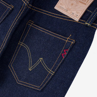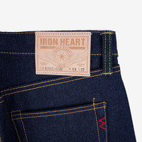 Iron Heart's slim straight jeans with a low/medium rise constructed from their 21/23oz UHR denim. UHR is an acronym for “Ultra Heavy Raw”, an unsanforised and loomstate fabric, UHR denim fabric starts at 21oz, and becomes (approximately) 23oz after shrinkage. The UHR enjoys virtually legendary status amongst aficionados and fans of the brand, due to its fading potential, and the density of the weave. - Made in Japan - Slim Straight cut - Low/medium rise - 21/23oz Ultra Heavy Raw selvedge denim - 21oz raw denim that will become 23oz when washed - Button fly and hidden rivets - Lined rear pockets - Belt loops are sewn into waist band - Selvedge fly detail - Poly/cotton constructional stitching - Amount of shrinkage will depend on how hot and vigorously jeans are washed, on 40 degree C wash you can expect approximately 1" shrinkage on waist, up to 2" shrinkage on inseam. All dimensions will shrink proportionately to the waist and inseam, those that are put under pressure (such as the waist or seat) will have a tendency to stretch back out, those that aren’t will not