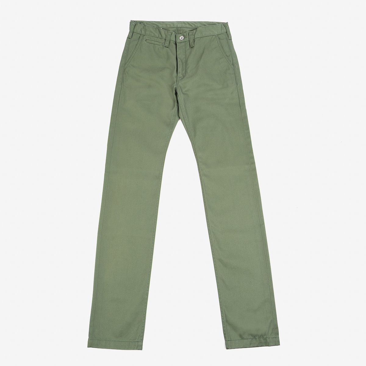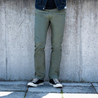 Chinos take their name from the fabric they are made from. Chino cloth is a cotton twill originally developed for the military. This version of what is now a classic casual pant is made from 9oz Japanese selvedge chino cloth. Iron Heart offers a number of different chino pants, this is our slim tapered, or '777' cut. Details - Made in Japan - Cold mercerised 9oz Japanese selvedge cotton chino cloth - Reactive dyed so little, if any fading - Zipper fly with top button closure - Sewn in belt loops - Two slash pockets - Discreet front coin pocket - Two rear pockets, left hand one with snap closure - One-washed so little or no shrinkage - Models Johnny and Steve wear Tag 33 - Need a shorter length? You will be prompted on checkout to order hemming if required