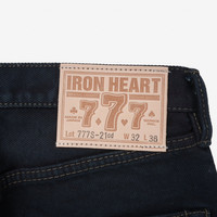 Iron Heart's low rise, slim tapered cut jeans, constructed from 21oz overdyed indigo selvedge denim. To create this darkened variation, Iron Heart takes a pair of standard IH-777S-21 jeans and steep the entire garment in black dye using a direct dyeing process. This stains the indigo denim and stitching, with the added bonus of removing all shrinkage from the fabric. A unique middle ground between traditional indigo and black denims, over time the fabric will gradually fade with blue-tinged hues in high-wear areas. Please note that previous versions of these jeans were overdyed using sulphur dye. Due to the environmental impact of sulphur dyes, Iron Heart have decided to switch to a direct dyeing process when overdyeing our heavyweight denims. The only noticeable difference is that this new process does not oxidise the brass hardware as previously. You can still expect these jeans to age and fade similarly to older models. - Made in Japan - Slim tapered cut - Low rise - 21oz rope dyed indigo warp, natural weft Japanese selvedge denim - Post-construction, the garment is overdyed black using a direct dyeing process - Fades slowly with an even contrast, the high wear areas will show a pale blue tone - Woven with a double twisted weft yarn - Lined rear pockets - Button fly and hidden rivets - Belt loops are sewn into the waistband - Poly/cotton constructional stitching - Selvedge side seams and fly construction - Overdyed, which takes out all potential shrinkage - The waist will stretch approximately one inch with wear - Other dimensions will stretch proportionately to the waist