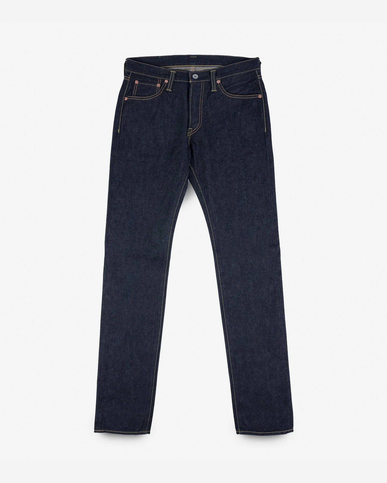 Our slim tapered cut jean made from our brand new 14oz broken twill selvedge denim. Broken twill denim was first used in 1964 by Wrangler as a solution for combatting leg twist. The process of weaving fabric in this method sees the combination of both right hand twill (RHT) and left hand twill (LHT) reversed every two warp ends, forming a zigzag-like pattern in the denim and resulting in no bias in either direction of the weave, therefore eliminating leg twist. Made In Japan - Designed by Shinichi Haraki, handmade by WORKS INC. in Japan 777 Slim Tapered Cut - Slim fit for those who prefer their jeans to sit lower on the hips - Low rise - Slim fit with a pronounced tapered from knee to hem - Classic 5-pocket design 14oz Japanese Broken Twill Selvedge Denim - 100% cotton - Broken twill weave - Indigo rope-dyed warp / white weft - This denim will fade naturally through wear and washing Hardware & Construction - Traditional 3-button fly - Iron Heart branded tack button at waistband - Works Inc branded pocket rivets - Hidden rivets on rear pockets - Poly/cotton stitching for increased strength - Single and double needle chain stitch construction - Belt loops anchored at three points and sewn into the waistband - Heavy cotton pocket bags and lined rear pockets Selvedge ID - Sideseam, fly, and coin pocket selvedge ID Leather Patch - Lightweight vegetable-tanned steerhide - Stitched on all sides - Dyed Iron Heart graphic - Please note: Continued washing (especially at higher temperatures) may cause shrinkage and deformities Sanforized & One-Washed - Sanforization is a post-weave mechanical process which removes most potential shrinkage from a fabric before garment construction - To further reduce the risk of shrinkage, we wash the completed garment in an aggressive industrial washing machine. This process removes virtually all potential shrinkage. - No further shrinkage is expected when washed according to our care guidelines Stretch Details - The waist will stretch out approximately 1" with wear. All other dimensions that are put under pressure will stretch proportionally to the waist Care Guidelines - We recommend washing this garment at 30°C with a low (or no) spin cycle. Hang dry, do not tumble dry