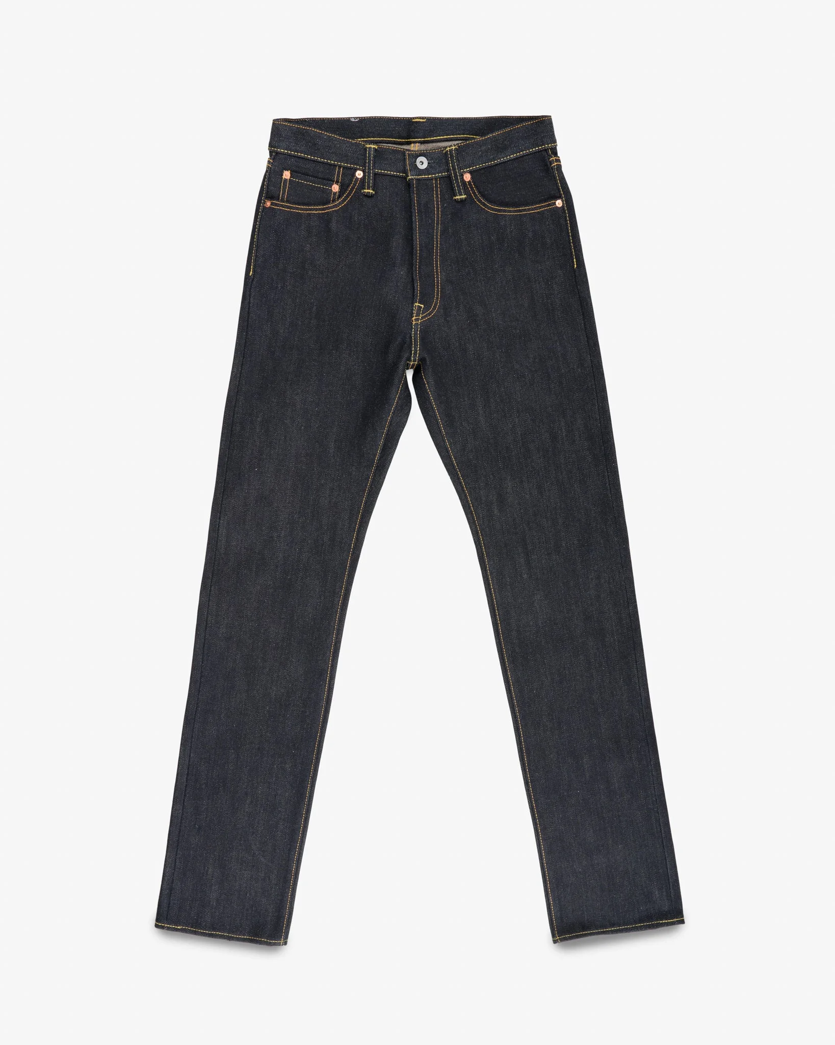Our relaxed tapered cut jean in our indigo 25oz denim. Woven with an indigo rope-dyed warp and a natural weft, this ultra heavy denim is at the limit of what can be made. Super-stiff when new and requires some "breaking-in"- with time and wear it becomes soft, pliable and very comfy. Made In Japan - Designed by Shinichi Haraki, handmade by WORKS INC. in Japan 888 Relaxed Tapered Cut - Modern tapered styling with a more relaxed fit - Medium/high rise - Roomier fit in the top block and thighs - Pronounced taper from knee to hem - Classic 5-pocket design 25oz Extra Heavy Japanese Selvedge Denim (XHS) - Our heaviest of heavyweight denim - 100% cotton - Indigo rope-dyed warp / white weft - Right-hand twill weave - This denim will fade naturally through wear and washing Hardware & Construction - 4-button fly (extra button added due to the higher rise) - Iron Heart branded tack button at waistband - Works Inc branded pocket rivets - Hidden rivets on rear pockets - Poly/cotton stitching for increased strength - Single and double needle chain stitch construction - Belt loops anchored at three points and sewn into the waistband - Heavy cotton pocket bags and lined rear pockets Selvedge ID - Sideseam, fly, and coin pocket selvedge ID Leather Patch - Heavyweight vegetable-tanned steerhide - Natural finish - Belt-through design - Debossed Iron Heart graphic - Please note: Continued washing (especially at higher temperatures) may cause shrinkage and deformities Sanforized but Unwashed - Sanforization is a post-weave mechanical process which removes most potential shrinkage from a fabric before garment construction - However, unlike most of our jeans, we have not washed the completed garment in an industrial washing machine, so some shrinkage remains - When washed following our care guidelines, expect approximately 1" shrinkage in the waist and inseam. All other dimensions will shrink proportionately to the waist Stretch Details - Post-soak or wash, the waist will stretch out approximately 1" with wear. All other dimensions that are put under pressure will have a tendency to stretch back to pre-soak/wash size Care Guidelines - We recommend washing this garment at 30°C with a low (or no) spin cycle. Hang dry, do not tumble dry