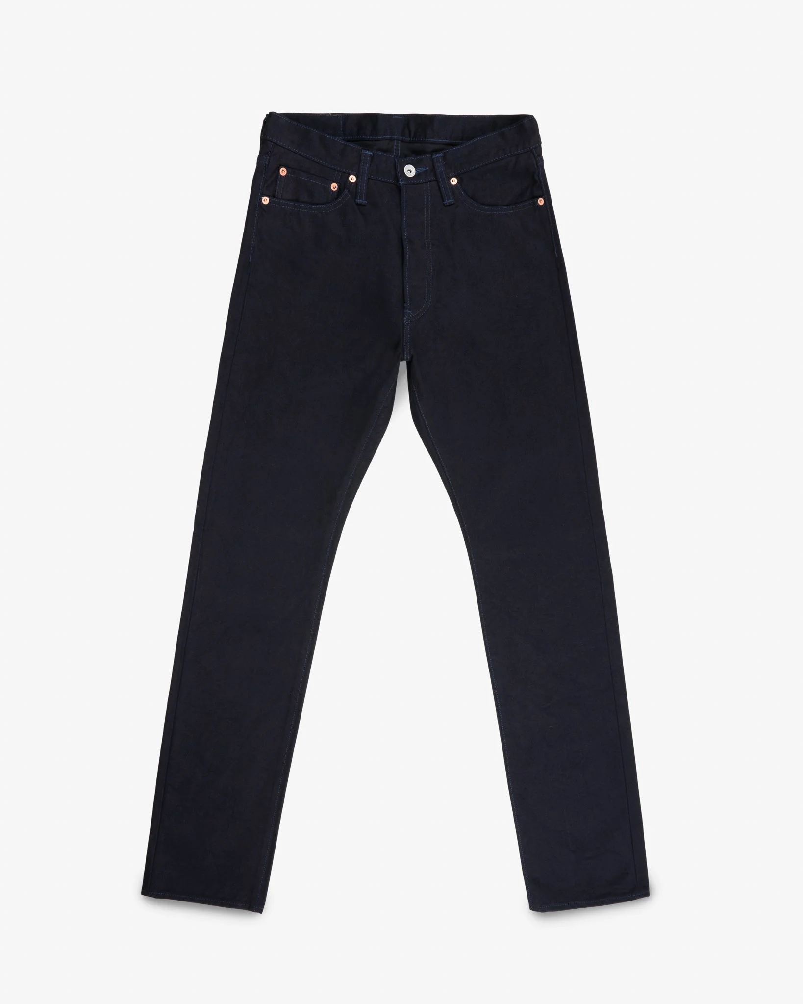 Our relaxed tapered jeans, made from 14oz indigo warp/black weft selvedge denim. The warp is indigo rope dyed, the weft is black sulphur dipped. Constructed with navy tonal stitching. Will fade with high contrast. Made In Japan - Designed by Shinichi Haraki, handmade by WORKS INC. in Japan 888 Relaxed Tapered Cut - Modern tapered styling with a more relaxed fit - Medium/high rise - Roomier fit in the top block and thighs - Pronounced taper from knee to hem - Classic 5-pocket design 14oz Japanese Selvedge Denim - Indigo/Black - 100% cotton - Woven with a double twisted weft yarn - Indigo rope-dyed warp / black sulphur-dipped weft - Right-hand twill weave - This denim offers a darker appearance and will fade with high contrast through wear and washing Hardware & Construction - 4-button fly (extra button added due to the higher rise) - Iron Heart branded tack button at waistband - Works Inc branded pocket rivets - Hidden rivets on rear pockets - Poly/cotton stitching for increased strength - Single and double needle chain stitch construction - Belt loops anchored at three points and sewn into the waistband - Heavy cotton pocket bags and lined rear pockets Selvedge ID - Sideseam, fly, and coin pocket selvedge ID Leather Patch - Lightweight vegetable-tanned steerhide - Stitched on all sides - Dyed Iron Heart graphic - Please note: Continued washing (especially at higher temperatures) may cause shrinkage and deformities Sanforized & One-Washed - Sanforization is a post-weave mechanical process which removes most potential shrinkage from a fabric before garment construction - To further reduce the risk of shrinkage, we wash the completed garment in an aggressive industrial washing machine. This process removes virtually all potential shrinkage. - No further shrinkage is expected when washed according to our care guidelines Stretch Details - The waist will stretch out approximately 1" with wear. All other dimensions that are put under pressure will stretch proportionally to the waist Care Guidelines - We recommend washing this garment at 30°C with a low (or no) spin cycle. Hang dry, do not tumble dry