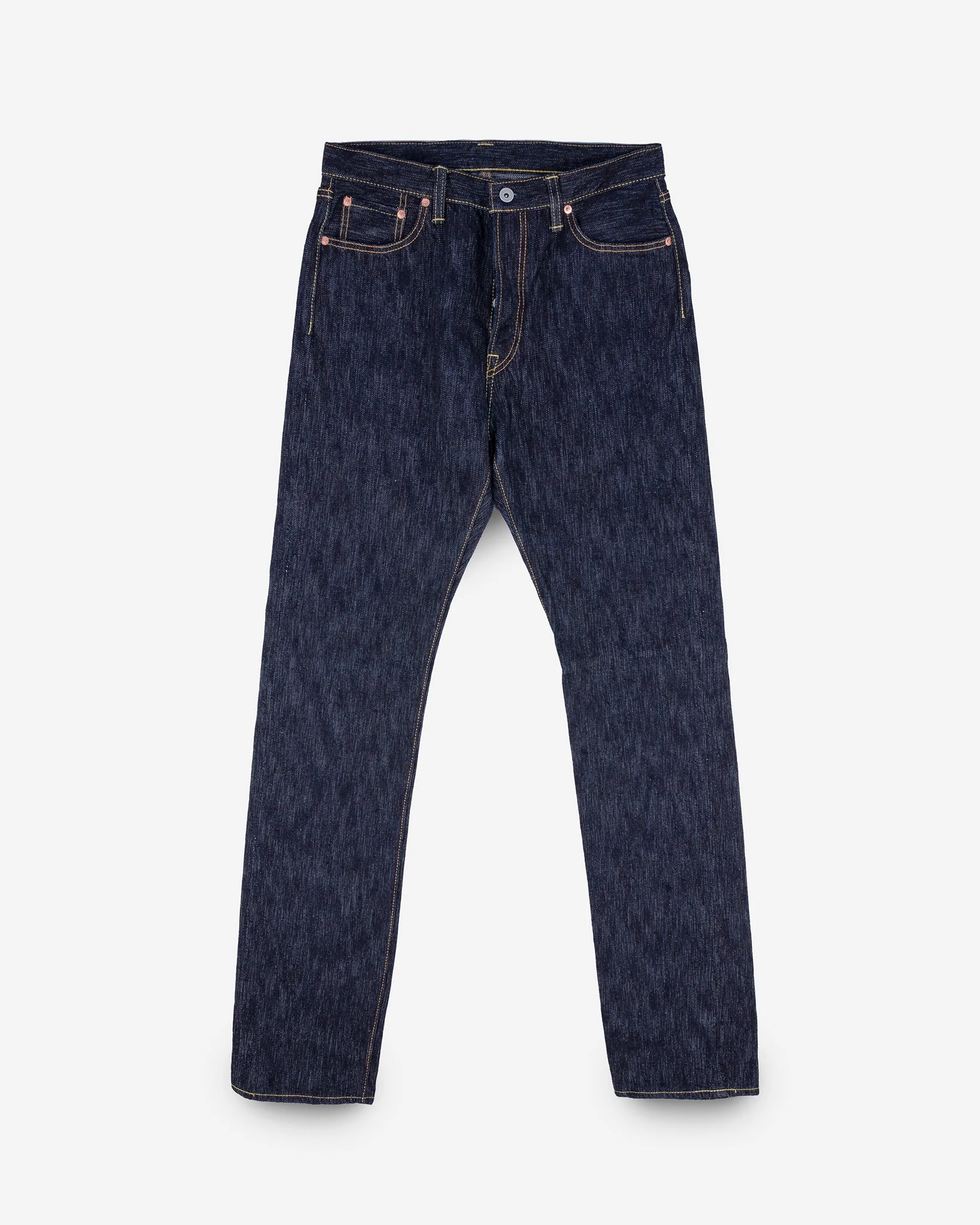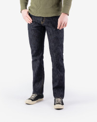 A first for Iron Heart, a slubby denim. This deep indigo selvedge denim has a really uneven hand on both the face and the reverse (think off the scale loom-chatter), but at the same time it is incredibly soft and comfortable to wear. Made In Japan - Designed by Shinichi Haraki, handmade by WORKS INC. in Japan 888 Relaxed Tapered Cut - Modern tapered styling with a more relaxed fit - Medium/high rise - Roomier fit in the top block and thighs - Pronounced taper from knee to hem - Classic 5-pocket design 16oz Japanese Slubby Selvedge Denim - 100% cotton - Loosely woven to create a heavily textured, breathable denim - Indigo rope-dyed warp / white organic cotton weft - Right-hand twill weave - This slub denim will fade with a distinctive grainy characteristic through wear and washing Hardware & Construction - 4-button fly (extra button added due to the higher rise) - Iron Heart branded tack button at waistband - Works Inc branded pocket rivets - Hidden rivets on rear pockets - Poly/cotton stitching for increased strength - Single and double needle chain stitch construction - Belt loops anchored at three points and sewn into the waistband - Heavy cotton pocket bags and lined rear pockets Selvedge ID - Sideseam, fly, and coin pocket selvedge ID Leather Patch - Heavyweight vegetable-tanned steerhide - Natural finish - Belt-through design - Debossed Iron Heart graphic - Please note: Continued washing (especially at higher temperatures) may cause shrinkage and deformities Sanforized & One-Washed - Sanforization is a post-weave mechanical process which removes most potential shrinkage from a fabric before garment construction - To further reduce the risk of shrinkage, we wash the completed garment in an aggressive industrial washing machine. This process removes virtually all potential shrinkage. - No further shrinkage is expected when washed according to our care guidelines Stretch Details - The waist will stretch out approximately 1" with wear. All other dimensions that are put under pressure will stretch proportionally to the waist Care Guidelines - We recommend washing this garment at 30°C with a low (or no) spin cycle. Hang dry, do not tumble dry