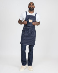 Made from 12oz Japanese Wabash, our full-length bib apron offers hard-wearing protection, practical features and classic workwear styling. Versatile pockets include a kangaroo-style chest pouch with dual pen slots and two large waist pockets, finished with heavy-duty straps and tie loops. Constructed using the same over-engineered techniques as our heavyweight jeans, all pockets are reinforced with brass rivets and stitched with high-tensile poly/cotton thread. Made In Japan - Designed by Shinichi Haraki, handmade by WORKS INC. in Japan 12oz Japanese Wabash - A traditional workwear fabric that dates back to the 1800s - 100% cotton - Twill weave - Rope-dyed warp and weft yarns - Post-weave, the dots are bleached onto the face of the fabric - This fabric will fade with vintage character through wear and washing Cut & Features - Full-length bib apron - Contrast stitching and bar tacks - Heavy-duty straps and tie-loops - Large chest pouch with dual pen holder slots - Two large waist pockets - One small waist pocket - Brass reinforcement rivets - Poly/cotton constructional stitching - Single and double needle stitch construction - One size fits all One-Washed Wabash Shrinkage - To reduce the risk of shrinkage, we wash the completed garment in an aggressive industrial washing machine. This process removes virtually all potential shrinkage. - Negligible shrinkage expected when washed in accordance to our care guidelines Care Guidelines - We recommend washing this garment at 30°C with a low (or no) spin cycle. Hang dry, do not tumble dry