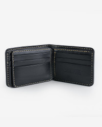 We redesigned the original and removed the coin pouch for those who prefer a slimmed-down version of this beautiful wallet. Made In Japan - Designed by Shinichi Haraki, handmade by WORKS INC. in Japan Slimline Small Shell Cordovan Wallet - Japanese Shell Cordovan leather - Inner calf leather - Hand-stitched - One bill slot - 3 primary card slots each side - 2 extra cards slots behind card slots - Removable centre credit card leaf with 3 card slots on one side and 1 on the other - Dimensions: H-3.5", L-4.5" Shell Cordovan - Favoured by high-end shoemakers, Shell Cordovan is a premium horsehide leather known for its smooth texture, durability, and ability to develop a rich patina. It’s sourced from the tight-knit, fibrous shell layer on the horse's rump, giving the leather its smooth surface, strength and resistance to creasing - Due to it’s smooth surface, Shell Cordovan is prone to scratching — be mindful of sharp objects - This type of leather already contains a high liquor content impregnated during the tanning process. It is important not to use too much polish when caring for your cordovan. We advise conditioning the leather very occasionally to prevent cracking, applying a small amount of leather conditioner or a specialised Shell Cordovan cream. Be careful not to over-condition, as this will result in a build-up of wax that will scratch easily, attract dirt and leave unsightly creases - To clean Shell Cordovan, use a soft, dry cloth to gently wipe off dust and dirt. Regularly buff the surface with a soft cloth if you wish to maintain its shine. For deeper cleaning, use a damp cloth with a small amount of mild soap. Always avoid soaking the leather. If it does get wet, blot the leather dry with a cloth and leave to air dry naturally — never dry with a heater or hairdryer