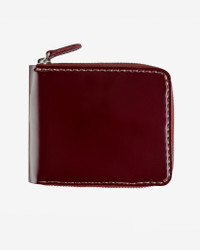 Super smooth and highly durable Shell Cordovan wallet with hand-sewn goat tendon stitching, cowhide leather interior, six card slots, and banknote section. The streamlined design ensures maximum comfort when stored in the back pocket of slim cut jeans. Finished with debossed Iron Heart Motorcycle Specialties and heavyweight YKK zipper. Made In Japan - Designed by Shinichi Haraki, handmade by WORKS INC. in Japan Zip-Secured Shell Cordovan Wallet - Black - Oxblood Shell Cordovan exterior - Cowhide leather interior - Hand stitched - Goat achilles tendons used for construction - Six card slots - One banknote section - YKK zip - Shell Cordovan zipper pull - Internal debossed Iron Heart logo - Length 4.5” (11.5cm), depth 3.75” (9.5cm) and thickness 0.9” (2.2cm) Shell Cordovan - Favoured by high-end shoemakers, Shell Cordovan is a premium horsehide leather known for its smooth texture, durability, and ability to develop a rich patina. It’s sourced from the tight-knit, fibrous shell layer on the horse's rump, giving the leather its smooth surface, strength and resistance to creasing - Due to it’s smooth surface, Shell Cordovan is prone to scratching — be mindful of sharp objects - This type of leather already contains a high liquor content impregnated during the tanning process. It is important not to use too much polish when caring for your cordovan. We advise conditioning the leather very occasionally to prevent cracking, applying a small amount of leather conditioner or a specialised Shell Cordovan cream. Be careful not to over-condition, as this will result in a build-up of wax that will scratch easily, attract dirt and leave unsightly creases - To clean Shell Cordovan, use a soft, dry cloth to gently wipe off dust and dirt. Regularly buff the surface with a soft cloth if you wish to maintain its shine. For deeper cleaning, use a damp cloth with a small amount of mild soap. Always avoid soaking the leather. If it does get wet, blot the leather dry with a cloth and leave to air dry naturally — never dry with a heater or hairdryer