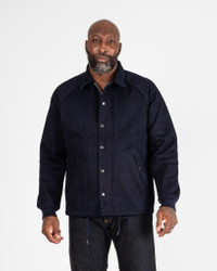 Our windbreaker-style jacket, constructed from 21oz Japanese serge. A heavy cotton twill similar to denim, this is the same fabric as our 21oz Wabash (just without the bleached dots), woven with indigo rope-dyed yarns which will gradually evolve in tone with wear - this jacket has some serious fade potential. Due to the more relaxed fit of our windbreaker cut, this versatile jacket is ideal for year-round layering, with practical features including tubular knit storm cuffs, drawstring hem, and an over-spec’d two-way zipper under a snap fastening placket. Made In Japan - Designed by Shinichi Haraki, handmade by WORKS INC. in Japan 21oz Japanese Serge - 21oz Japanese Serge - 100% cotton - Indigo rope-dyed warp and weft - Tonal stitching - This fabric will fade with high contrast through wear and washing Cut & Construction - Windbreaker jacket - Over spec'd nickel YKK zipper under snap fastening placket - Snap fastening hand warmer pockets - Hemline drawstring - Tubular knit storm cuffs - Internal felled seams - Single and double needle stitch construction - Poly/cotton constructional stitching Model Sizing Model Alex wears XL One-Washed - Post construction, we wash the completed garment in an aggressive industrial washing machine. This process removes virtually all potential shrinkage. - No further shrinkage is expected when washed according to our care guidelines Care Guidelines - We recommend washing this garment at 30°C with a low (or no) spin cycle. Hang dry, do not tumble dry