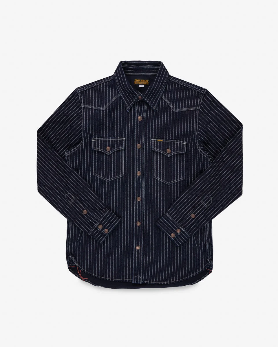 We love our CPO style shirt pattern, so we found little reason not to make it out of our 12oz indigo wabash fabric. Featuring indigo rope dyed warp and weft yarns, you can expect the shirt to age beautifully. The dots are bleached in to the fabric post weave so will remain prominent as the indigo fades around it. Made In Japan - Designed by Shinichi Haraki, handmade by WORKS INC. in Japan 12oz Japanese Wabash - A traditional workwear fabric that dates back to the 1800s - 100% cotton - Twill weave - Rope-dyed warp and weft yarns - Post-weave, the dots are bleached onto the face of the fabric - This fabric will fade with vintage character through wear and washing Cut & Features - Military CPO shirt - Regular fit with slightly longer body - Button fastenings - Flap-down pockets - Handwarmer pockets - Straight back yoke - Straight hem with split gussets Optional Upgrades This garment is fitted with Iron Heart branded oversized copper snap fastenings. Want to customise? Upgrade with a choice of alternative ‘heavyweight’ snap options when you add to cart Constructional Stitching - Single, double and triple needle stitching - Poly/cotton thread for enhanced strength and durability - Bar tack pocket reinforcements - Chainstitched side seams - Felled internal seams Model Sizing Model Courtney wears XXL One-Washed Wabash Shrinkage - To reduce the risk of shrinkage, we wash the completed garment in an aggressive industrial washing machine. This process removes virtually all potential shrinkage. - Negligible shrinkage expected when washed in accordance to our care guidelines Care Guidelines - We recommend washing this garment at 30°C with a low (or no) spin cycle. Hang dry, do not tumble dry