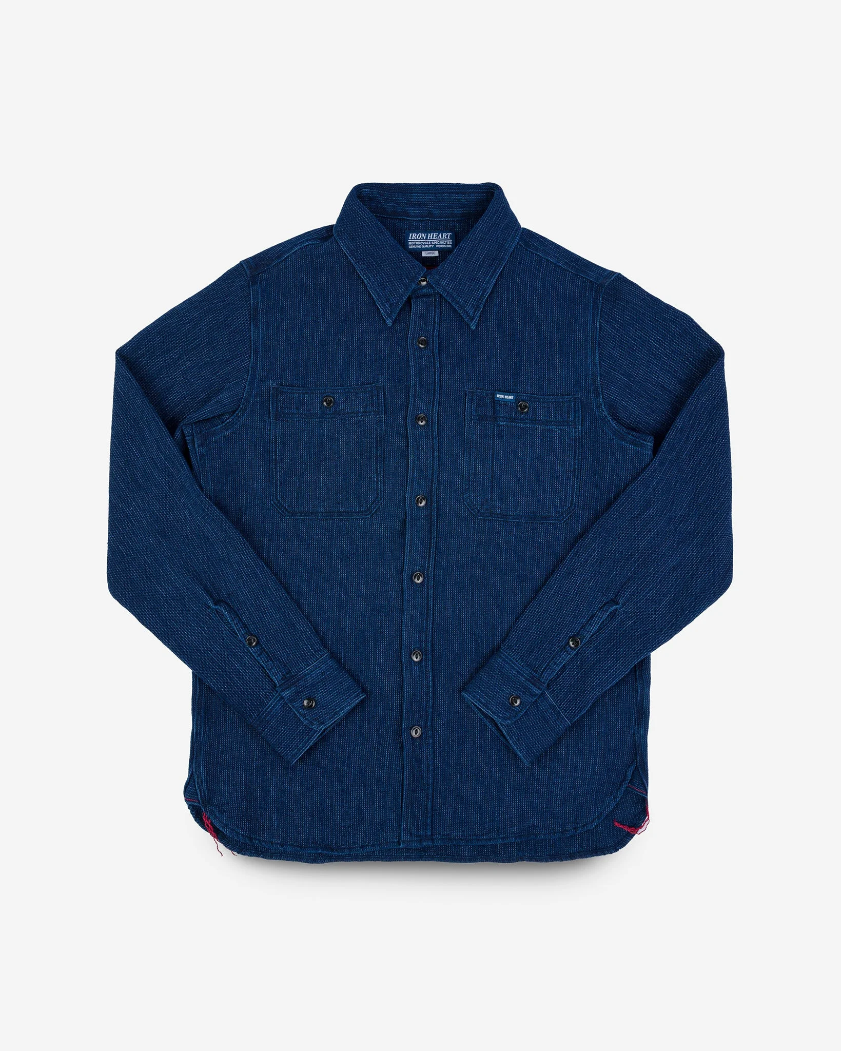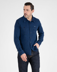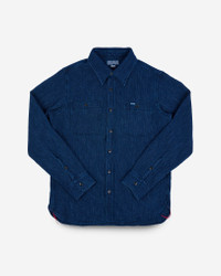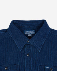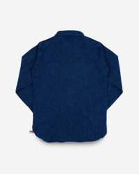 Our classic work shirt design made from a super soft indigo waffle fabric. Being indigo dyed, this shirt will fade over time and age beautifully with wear. Made In Japan - Designed by Shinichi Haraki, handmade by WORKS INC. in Japan Japanese Waffle - 100% cotton - Waffle weave - rope-dyed warp and weft yarns - This fabric will fade with vintage character through wear and washing Cut & Features - Work shirt - Regular fit - Button fastenings - Chest pockets with pen holder - Straight back yoke - Rounded hem with gussets and chainstitch run-off Optional Upgrades This shirt is fitted as standard with cat’s eye buttons. Want to customise? Upgrade with a choice of 13mm or 15mm sterling silver buttons from GOOD ART HLYWD when you add to cart Constructional Stitching - Single, double and triple needle stitching - Poly/cotton thread for enhanced strength and durability - Bar tack pocket reinforcements - Chainstitched side seams - Felled internal seams Model Sizing Model Sam is wearing Large One-Washed - Post construction, we wash the completed garment in an aggressive industrial washing machine. This process removes virtually all potential shrinkage. - No further shrinkage is expected when washed according to our care guidelines Care Guidelines - We recommend washing this garment at 30°C with a low (or no) spin cycle. Hang dry, do not tumble dry