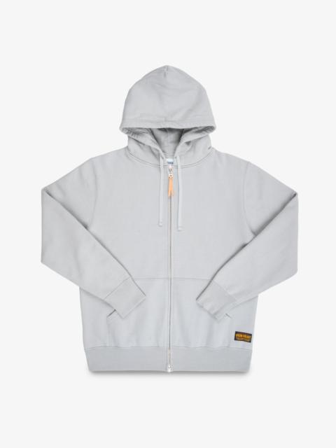 The ultra heavy loopwheel fleece we use for all of our sweatshirts is woven in Wakayama and weighs in at a massive 14oz. This Hoodie is super windproof and is constructed using four needle Union Special flat stitched seams. Finished with front pouch pockets, a 2-way Universal zipper, and adjustable hood. Made In Japan - Designed by Shinichi Haraki, handmade by WORKS INC. in Japan 14oz Ultra Heavy Japanese Loopwheel Cotton - 100% cotton - 14oz loopwheel cotton fleece - Woven in Wakayama - Reactive-dyed warp and weft - Fade-resistant to ensure a steadfast colour Cut & Construction - Long-sleeved zip up sweater - Integrated hood with drawstring - Two-way Universal zipper - Leather zip pull - Handwarmer pouch pockets - Ribbed cuffs & hem - Four-needle, Union Special flat stitched seams - Sleeves are designed to be fairly tight, to avoid wind penetration Model Sizing Model Sam is wearing Large One-Washed - Post construction, we wash the completed garment in an aggressive industrial washing machine. This process removes virtually all potential shrinkage. - No further shrinkage is expected when washed according to our care guidelines Care Guidelines - We recommend washing this garment at 30°C with a low (or no) spin cycle. Hang dry, do not tumble dry