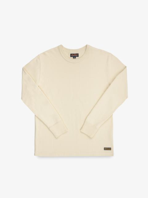 Haraki designed this as a long sleeved t-shirt, but calling it a t-shirt is misleading. At 11oz this is a seriously heavy and substantial cotton knit, from a distance it does look like a t-shirt, but once worn it feels so much more. Made In Japan - Designed by Shinichi Haraki, handmade by WORKS INC. in Japan 11oz Japanese Cotton Knit - 100% cotton - Reactive-dyed warp and weft yarns Cut & Construction - Long sleeved sweater/T-shirt - Crew neck - Ribbed collar and elasticated cuffs - Poly/cotton stitching Model Sizing Model Sam is wearing Large One-Washed - Post construction, we wash the completed garment in an aggressive industrial washing machine. This process removes virtually all potential shrinkage. - No further shrinkage is expected when washed according to our care guidelines Care Guidelines - We recommend washing this garment at 30°C with a low (or no) spin cycle. Hang dry, do not tumble dry