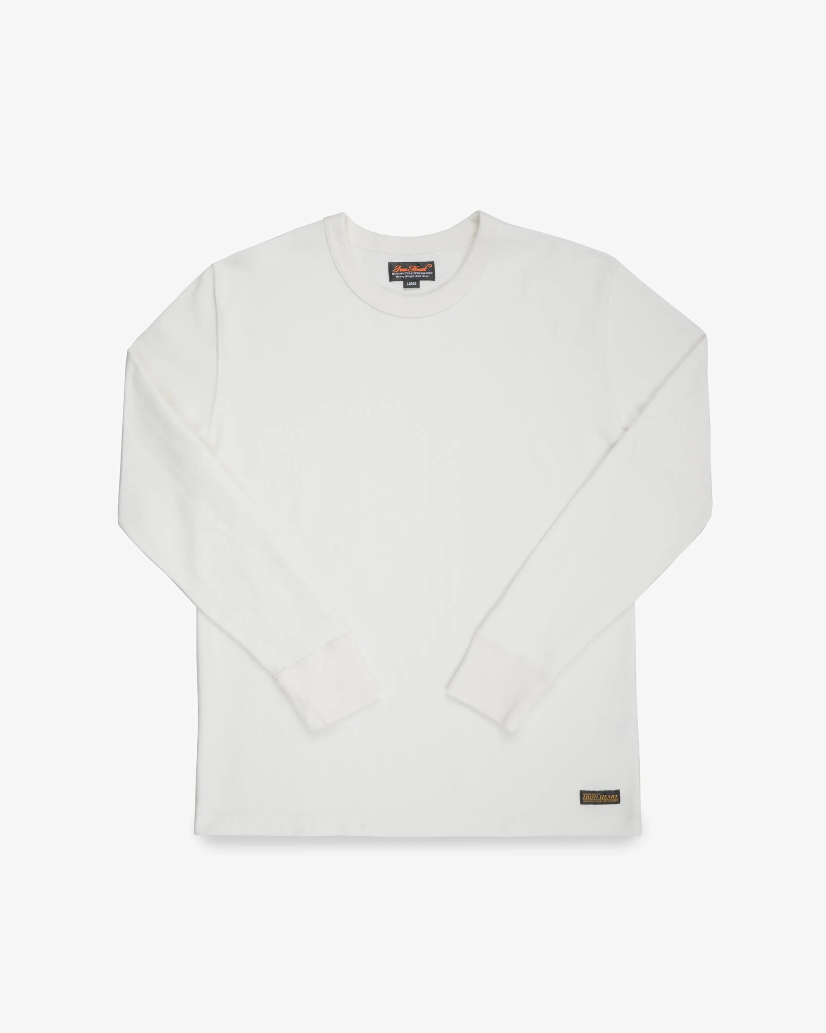 Haraki designed this as a long sleeved t-shirt, but calling it a t-shirt is misleading. At 11oz this is a seriously heavy and substantial cotton knit, from a distance it does look like a t-shirt, but once worn it feels so much more. Made In Japan - Designed by Shinichi Haraki, handmade by WORKS INC. in Japan 11oz Japanese Cotton Knit - 100% cotton - Reactive-dyed warp and weft yarns Cut & Construction - Long sleeved sweater/T-shirt - Crew neck - Ribbed collar and elasticated cuffs - Poly/cotton stitching Model Sizing Model Rudi wears Large One-Washed - Post construction, we wash the completed garment in an aggressive industrial washing machine. This process removes virtually all potential shrinkage. - No further shrinkage is expected when washed according to our care guidelines Care Guidelines - We recommend washing this garment at 30°C with a low (or no) spin cycle. Hang dry, do not tumble dry