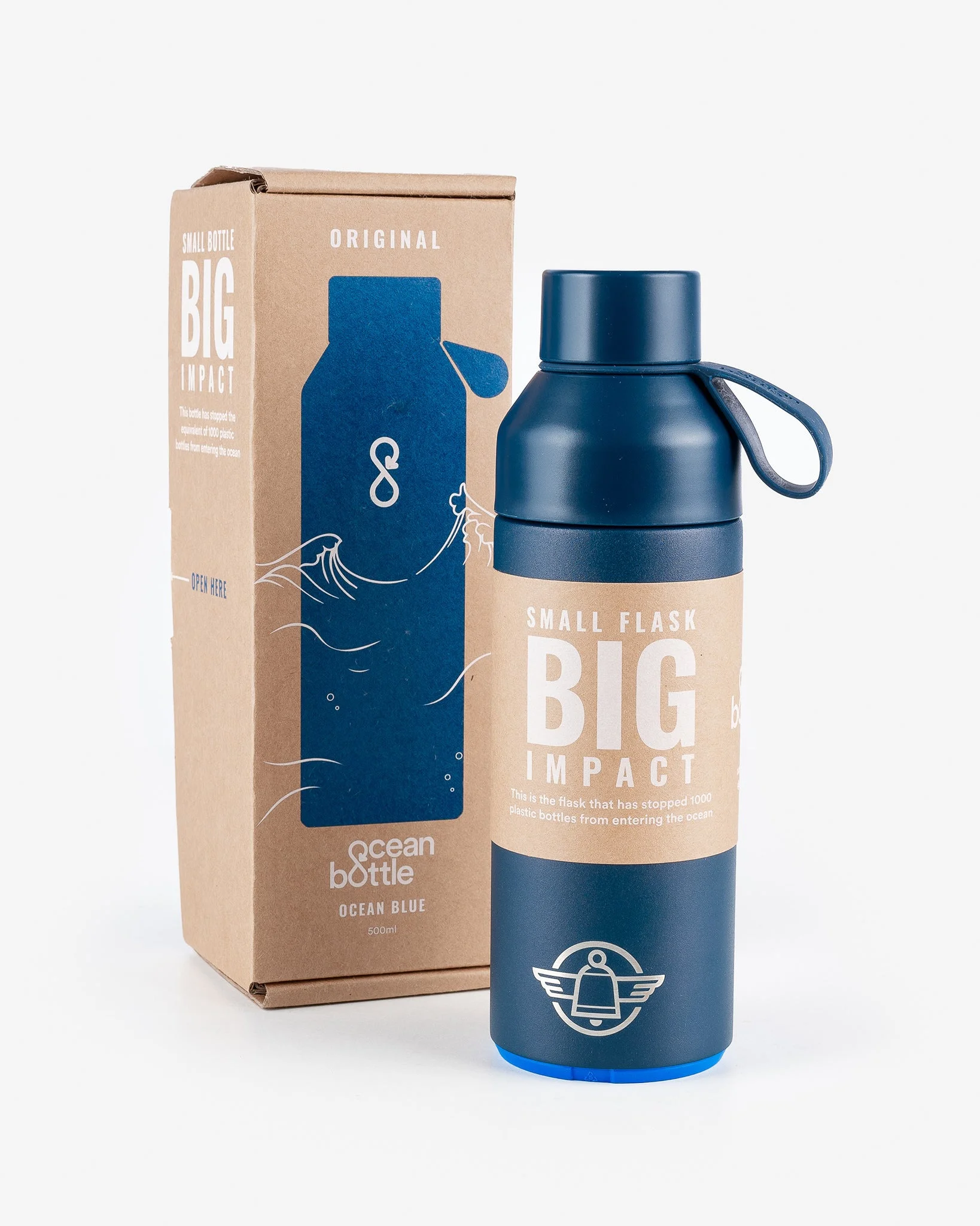 Designed in collaboration with K8 in Oslo, Norway, Ocean Bottle offers an award-winning range of reusable drink containers that are both practical and ethically responsible. The innovative conservation program founded by Ocean Bottle ensures that for every bottle sold, 25 lbs of plastic (equivalent to 1000 bottles) is reclaimed from the world’s oceans and rivers, all while supporting the livelihoods of coastal communities worldwide. Iron Heart x Ocean Bottle 500ml Stainless Steel Bottle - 500ml reusable drinks bottle - 68mm diameter x 220mm height - Made from 90% recycled stainless steel, BPA-free plastic, silicone rubber and ocean-bound plastic. - Double wall, vacuum-insulated - suitable for hot or cold drinks - Dual lid design for easy cleaning and adding ice - Non-sweat surface - Silicone rubber carry loop and seals - Dishwasher safe up to 60°C - Smart chip for registering with the Ocean Bottle app - Every sale funds the collection of 25 lbs of ocean-bound plastics, with more collected with each refill logged on the Ocean Bottle app - Please note: for hygiene reasons, bottles are non-returnable