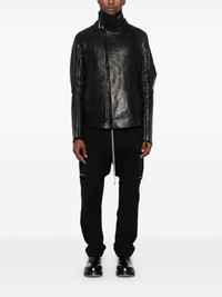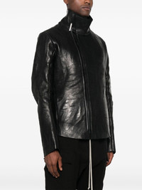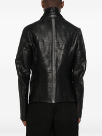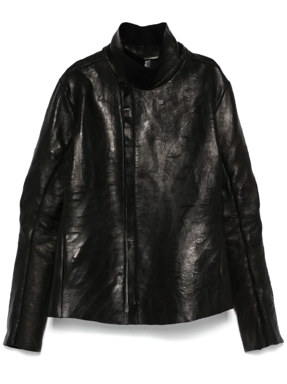 creased biker jacket Highlights - Black - Lambskin - Crease effect - Spread collar - Long sleeves - Two side inset pockets - Decorative zip detailing - Straight hem - Concealed front zip fastening Made in France Composition Lining: Wool 100% Outer: Lamb Skin 100% SIZE & FIT Model measurements Height 6 ft 2 in(1.88 m) Bust/Chest 36.61 in(93 cm) Hips 35.82 in(91 cm) Waist 27.95 in(71 cm) FittingInformation Designed for a regular fit, allowing for a comfortably loose fit throughout the body Soft leather has a supple and smooth construction offering some flexibility This piece fits true to size – take your usual size