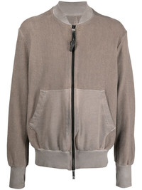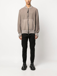 exposed-seam zip-up bomber jacket