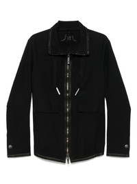 high-neck zipper-pockets jacket Highlights - Black - Front two-way zip fastening - Two side inset pockets - Press-stud fastening cuffs - Decorative stitching Made in France Composition Calf Leather 100%, Cotton 97%, Spandex/Elastane 3%