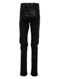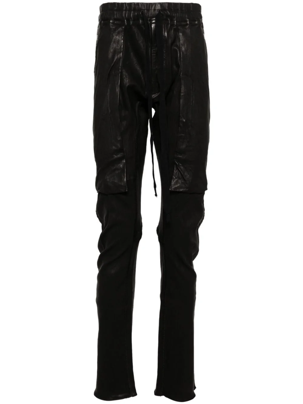 leather trousers Highlights - Black - Leather - Elasticated drawstring waistband - Front button fastening - Two side inset pockets - Two zip-fastening pockets - Panelled design - Stretch-jersey Made in France Composition Leather 100%