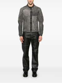 Musculaire jacket Highlights - Grey - Front zip fastening - Two side inset pockets - Press-stud fastening cuffs - Band collar Made in France Composition Lambskin 100% SIZE & FIT Model measurements Height 6 ft 2 in(1.87 m) Bust/Chest 37.79 in(96 cm) Hips 37.79 in(96 cm) Waist 30.31 in(77 cm) FittingInformation Designed for a slim fit, offering a comfortable fit that sits just away from the body The narrow-cut sleeves offer a close fit at the arms Firm leather offering little flexibility to maintain its durability and sturdiness