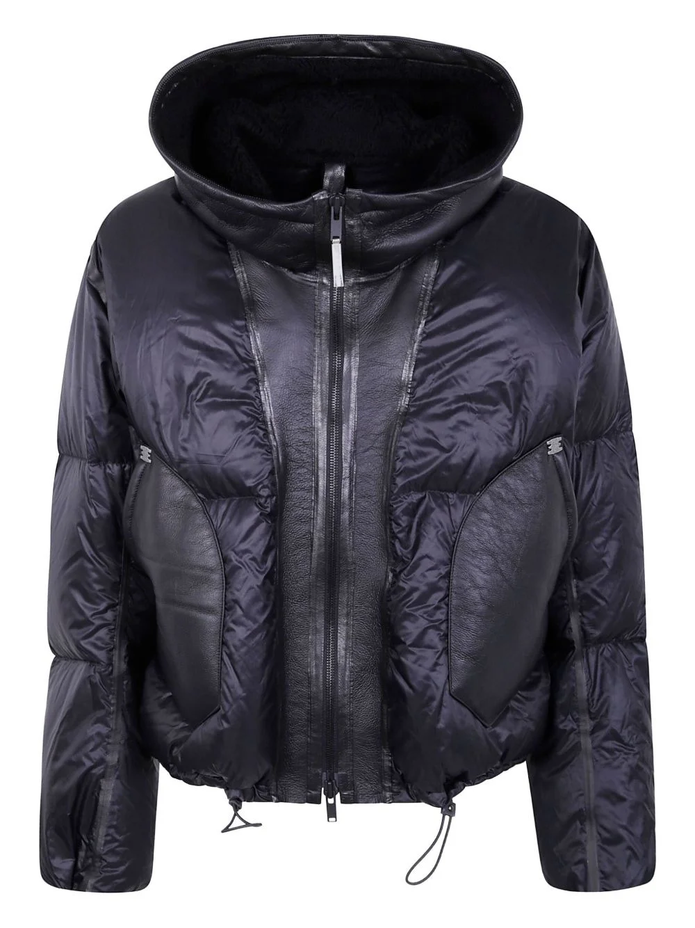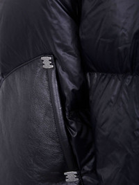 panelled quilted jacket Highlights - Black - Quilted design - Leather-effect panels - Zip fastening - Drawstring hem Made in France Composition Polyamide 100% Washing instructions Read Manufacturer Guidelines