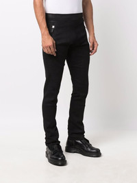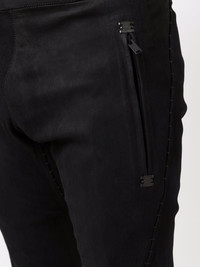 slim-cut lambskin trousers jet-black lambskin slim cut two side zip-fastening pockets mid-rise Made in France Composition Lamb Skin 100% SIZE & FIT Model measurements Height 6 ft 1 in(1.85 m) Bust/Chest 37.79 in(96 cm) Hips 37.4 in(95 cm) Waist 30.7 in(78 cm) FittingInformation This piece fits true to size. We recommend you get your regular size Cut for a slim fit Made with a mid-weight fabric Washing instructions Specialist Cleaning