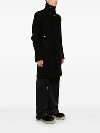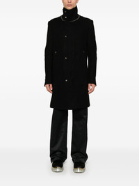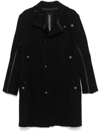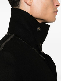 wool coat Highlights - Black - Wool - Contrast stitching - Front press-stud fastening - Classic collar - Long sleeves - Press-stud fastening cuffs - Two side zip-fastening pockets - Straight hem Made in France Composition Lining: CALFSKIN 100% Outer: Wool 100% SIZE & FIT Model measurements Height 6 ft 1 in(1.85 m) Bust/Chest 35.82 in(91 cm) Hips 37.79 in(96 cm) Waist 29.13 in(74 cm) FittingInformation Designed for a slim fit, offering a comfortable fit that sits just away from the body The vented hem offers movement at the rear Made from a midweight non-stretch fabric