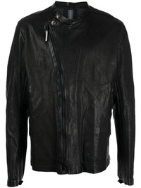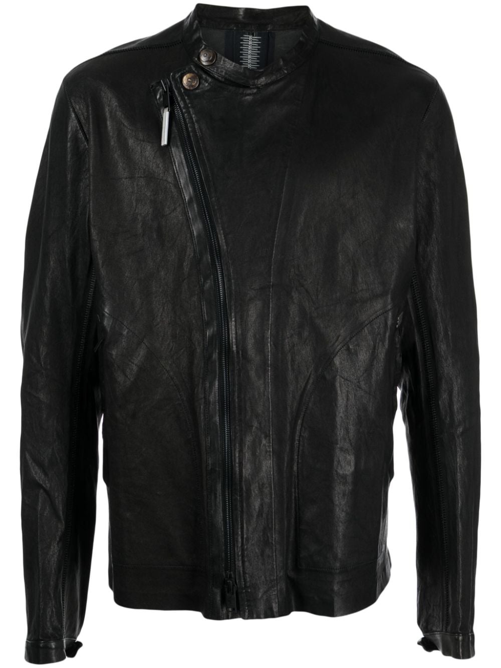 zip-detail leather jacket Highlights - Black - Lambskin - Decorative zip detailing - Band collar - Off-centre front zip fastening - Long sleeves - Straight hem Made in France Composition Lamb Skin 100%