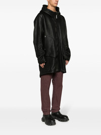zip-up hooded coat Highlights - Black - Leather - Silver-tone hardware - Silver-tone logo plaque - High neck - Classic hood - Front two-way zip fastening - Long sleeves - Two side inset pockets - Straight hem Made in France Composition Lining: Lamb Fur 100% Outer: Lamb Skin 100%, CALFSKIN 100%, Lamb Fur 100% SIZE & FIT Model measurements Height 6 ft 1 in(1.86 m) Bust/Chest 36.61 in(93 cm) Hips 37 in(94 cm) Waist 28.74 in(73 cm) FittingInformation Designed to be unstructured, offering a loose fit throughout Made from a midweight non-stretch fabric, this piece offers minimal elasticity when worn This piece fits true to size – take your usual size Washing instructions Specialist Cleaning