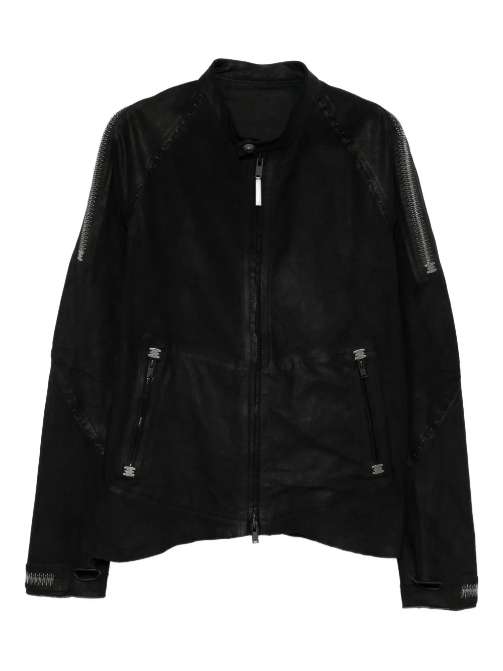 zipped leather jacket Highlights - Black - Front zip fastening - Two side zip-fastening pockets - Long sleeves Made in France Composition Lambskin 100% SIZE & FIT Model measurements Height 6 ft 2 in(1.87 m) Bust/Chest 33.07 in(84 cm) Hips 35.43 in(90 cm) Waist 26.77 in(68 cm) FittingInformation Designed for a regular fit, allowing for a comfortably loose fit throughout the body Soft leather has a supple and smooth construction offering some flexibility Washing instructions Specialist Cleaning