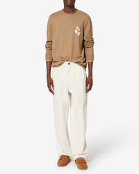 Thin cotton and wool blend knit sweater Round neckline Long sleeves "Marant" jacquard logo on the chest Ribbed finishes Regular fit Style: PU0874HAD1L08HCMLG ANTEA 70% cotton (1), 30% RWS wool Care & Sustainability Cold hand wash with suitable detergent For more details, see the instructions on the composition label RWS wool Certified by Ecocert Greenlife - 257833 The Responsible Wool Standard ensures that the wool comes from farms that respect animal welfare and from pastures managed in accordance with environmental best practices. the history and environmental impact of this product