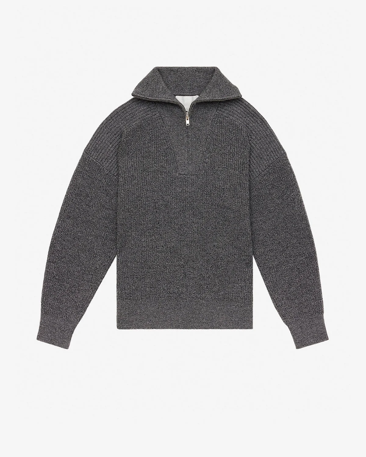 Ribbed merinos wool sweater Zip-up collar Long sleeves Ribbed finishes Tone-on-tone "Marant" logo embroidered on the back Relaxed fit Style: PU0080HAA1L79H02DG BENNY 100% merinos wool