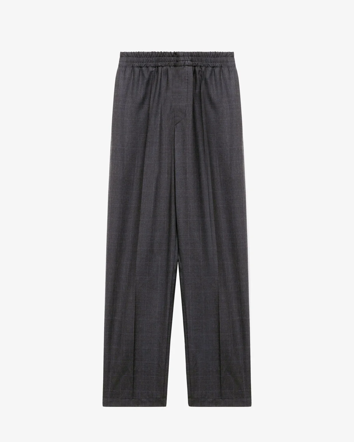 Pleated Glen plaid wool pants Adjustable elasticated drawstring on inside of waist 2 side pockets Straight cut Style: PA0074HA-A3F61H NAHILI 100% Virgin Wool