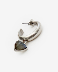 Hoop earring with pendant Single half-hoop earring in silver-finish brass Pendant with a natural, triangular labradorite stone Clasp with pin and butterfly back "Isabel Marant" logo engraved on the inside 80% brass, 20% stone
