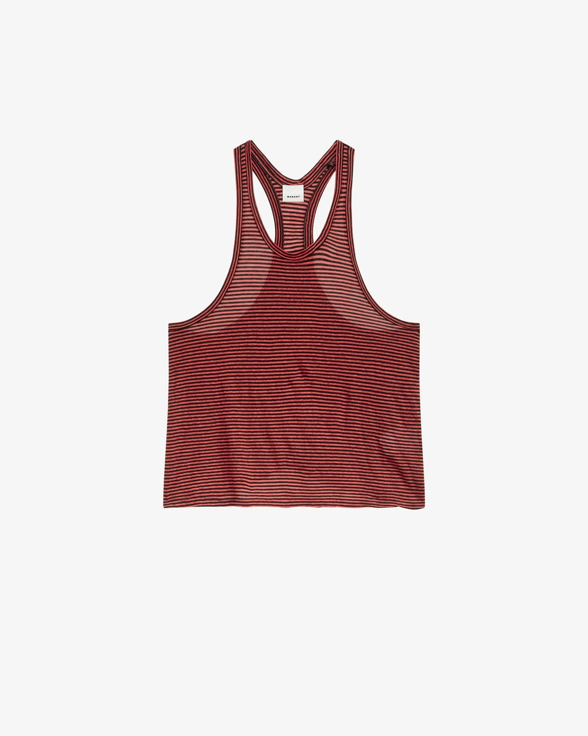 Striped cotton and linen tank top Round neckline Ribbed finishes on the neckline and armholes Straight cut Style: TS0265HAC1N10H70RD DARIUS 55% linen, 45% cotton