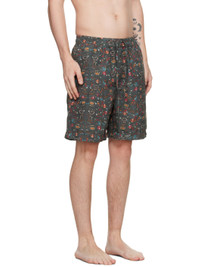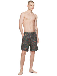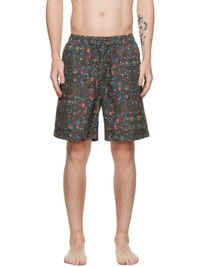 Plain-woven polyester shorts. Graphic pattern printed throughout. · Self-tie drawstring at elasticized waist · Three-pocket styling · Partial nylon mesh brief-style lining Supplier color: Black/Orange Body: 100% polyester. Lining: 100% polyamide. Made in Tunisia 231600M193027