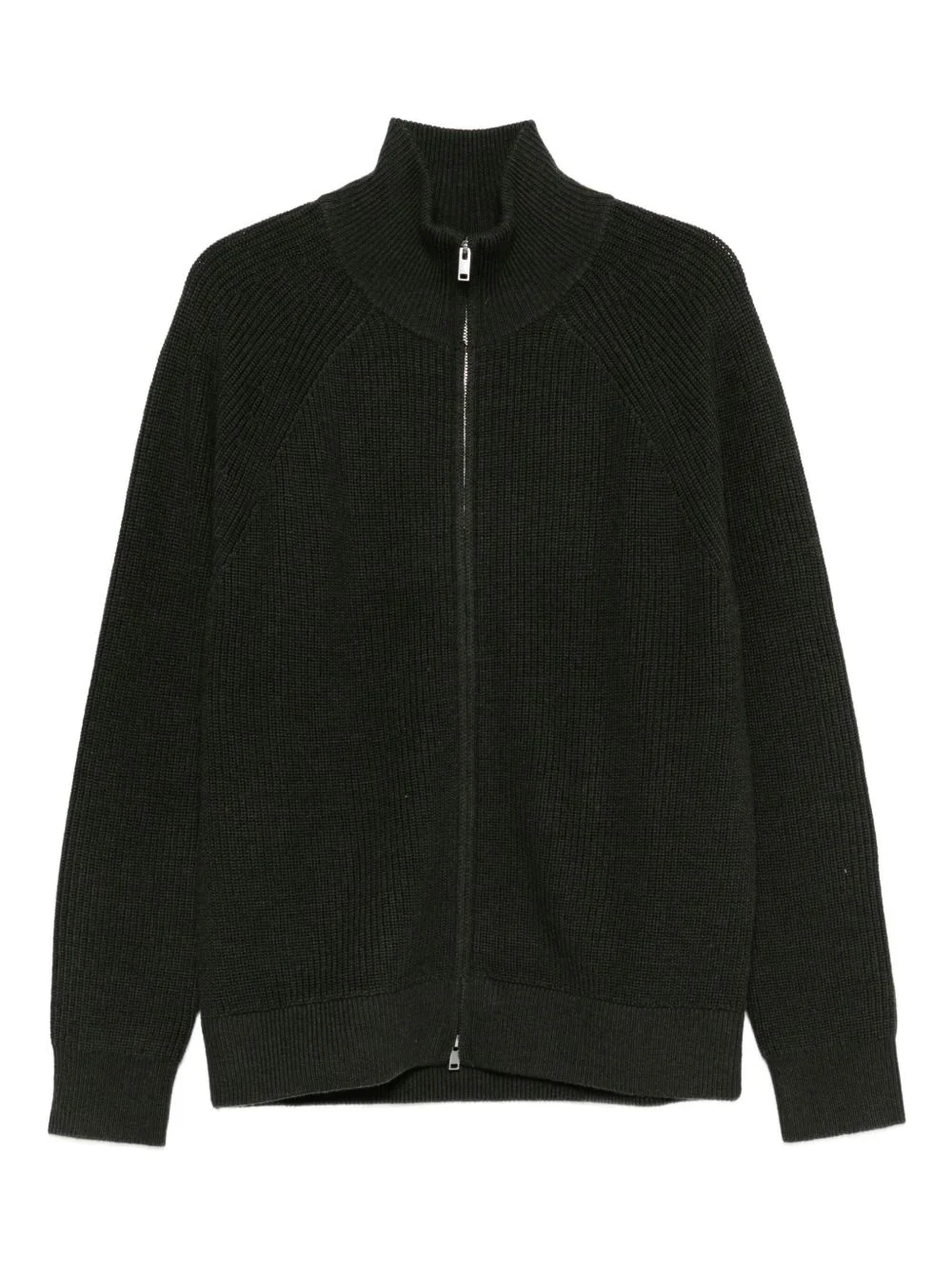 high-neck zip-up sweatshirt Highlights - Dark green - Ribbed knit - High neck - Zip fastening - Raglan sleeves - Straight hem Imported Composition Merino 100% Washing instructions Read Manufacturer Guidelines