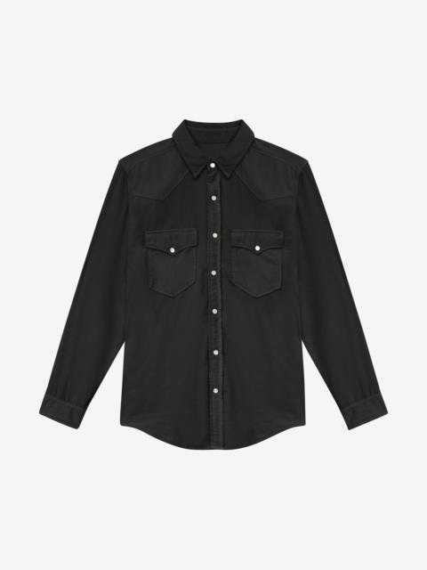Overdyed western corduroy shirt Shirt collar Shoulder yokes Snap-fastened Patch pockets on the chest with snap-fastened flaps Long sleeves Straight snap-fastened cuffs Rounded hem Straight cut Style: CH0214HAC1I10H01VB VASCO 100% cotton
