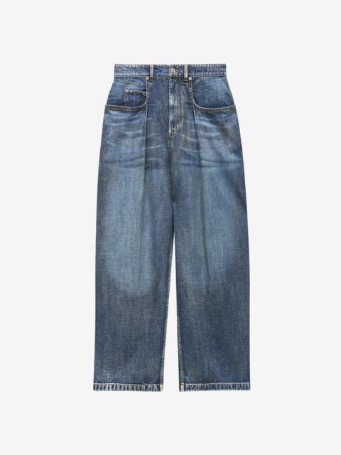 Pleated loose fit denim jeans Fitted waistband with loops Metal button tab with a zipper Pleated front 5 classic pockets Silver-finish metal rivets High waist Style: PA0263HA-B1H09H JANAEL 100% cotton