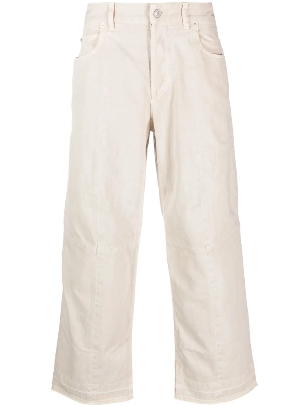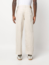 Jorel wide-leg trousers Highlights - Off-white - Cotton - Panelled design - Logo patch to the rear - Straight leg - Mid-rise - Belt loops - Front button and zip fastening - Classic five pockets Imported Composition Outer: Cotton 100% Lining: Cotton 100% SIZE & FIT Model measurements Height 6 ft 0 in(1.84 m) Bust/Chest 34.64 in(88 cm) Hips 35.03 in(89 cm) Waist 27.95 in(71 cm) FittingInformation Designed for a straight-leg, allowing for an unrestricted and comfortable fit over the leg Sturdy and hard-wearing, this denim piece offers no stretch This piece fits true to size – take your usual size Washing instructions Machine Wash