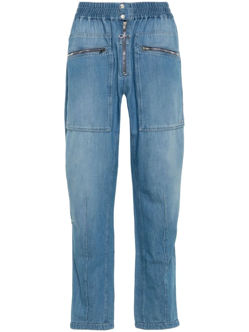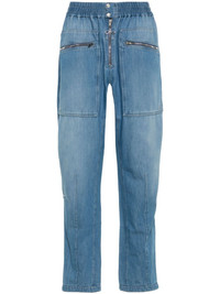 Jelson straight-leg jeans Highlights - Blue - Cotton - Denim - Elasticated waistband - D-ring findings - Two zip-fastening pockets - Eyelet detailing - Dart detailing - Two rear patch pockets - Front press-stud and zip fastening Imported Composition Outer: Cotton 100% Lining: Polyester 65%, Cotton 35% SIZE & FIT Model measurements Height 6 ft 2 in(1.89 m) Bust/Chest 36.22 in(92 cm) Hips 35.82 in(91 cm) Waist 28.54 in(72.5 cm) FittingInformation Designed for a tapered leg, these jeans allow a loose unrestricted fit over the leg with a closer fit towards the ankle The elasticated waist allows for a comfortable fit This piece fits true to size – take your usual size