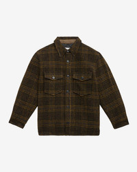 Checkered virgin wool jacket Shirt collar Buttoned front Patch pockets with buttoned flaps Long sleeves Straight cuffs Raglan side sleeves Lapel and interior finishes with bias Relaxed fit Style: VE0548HAC3D02H67KI KERVEY 100% virgin wool