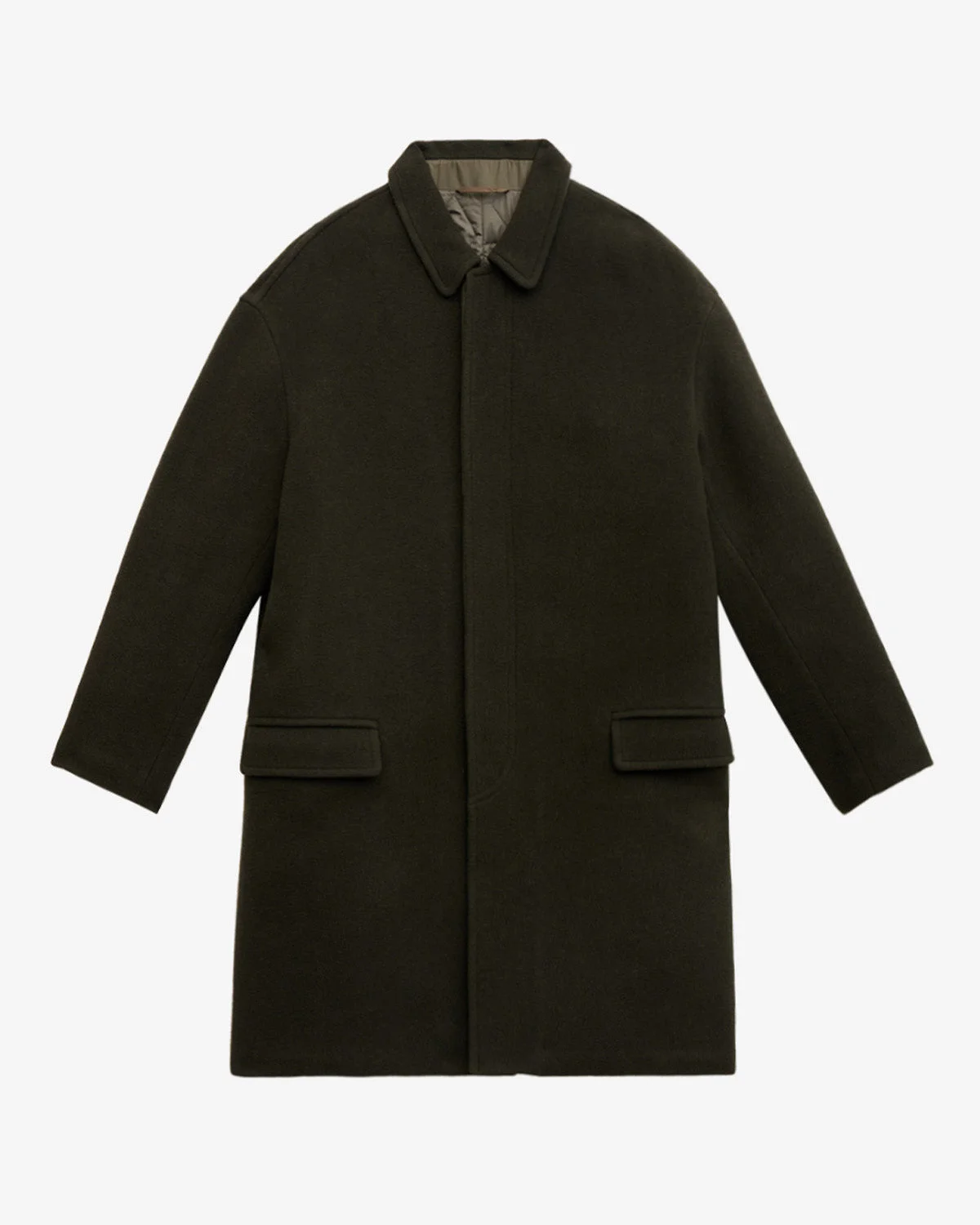 Long wool blend coat Shirt collar Long sleeves Buttoned front Flap pockets on the sides Quilted lining Straight cut Style: MA0461HAC3D05H67DK DENTON 75% wool, 25% polyamide
