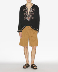 Casual Bermuda shorts in cotton twill Fitted waistband with loops and elasticated back Engraved metal button tab with a zipper Pleated front Side pockets Pockets in back Medium-rise waist Style: SH0239HAC2G02H50TF KOSTINO 100% cotton