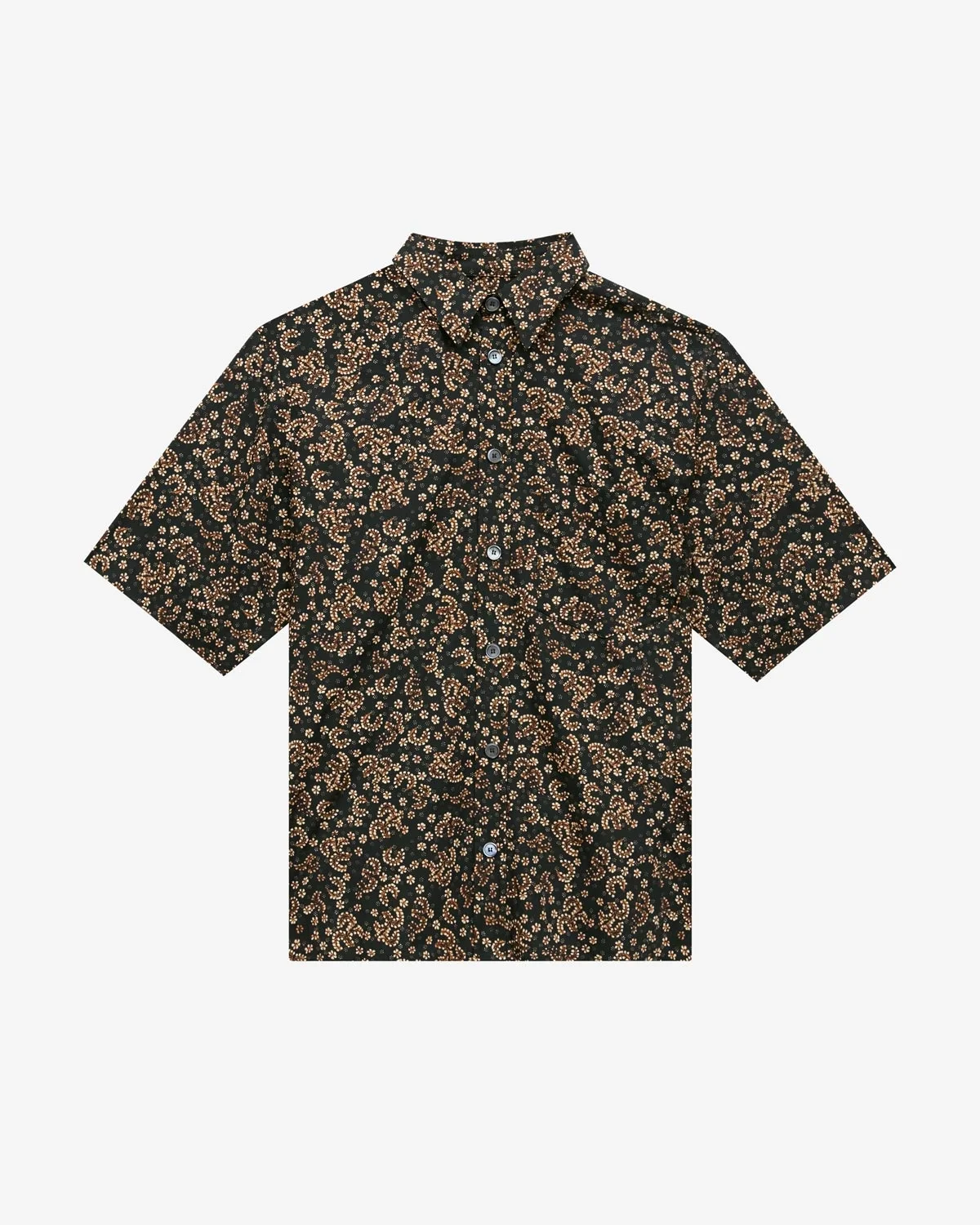 Short-sleeve printed cotton shirt Shirt collar Patch pocket on the chest Buttoned front Rounded hem Straight cut Style: CH0085HA-B3I03H LABILIO 100% cotton