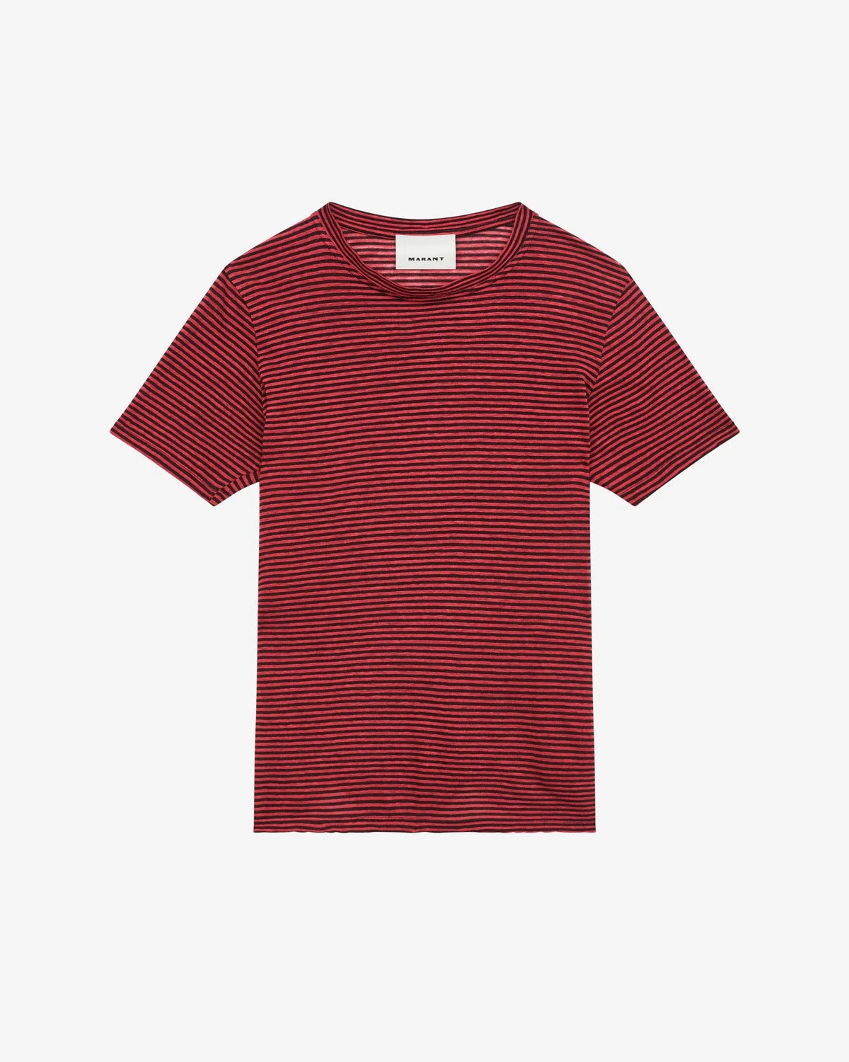 Striped cotton and linen T-shirt Round neckline with ribbed finishes Short sleeves Straight cut Style: TS0063HAC1N10H70RD LEON 50% cotton, 50% linen